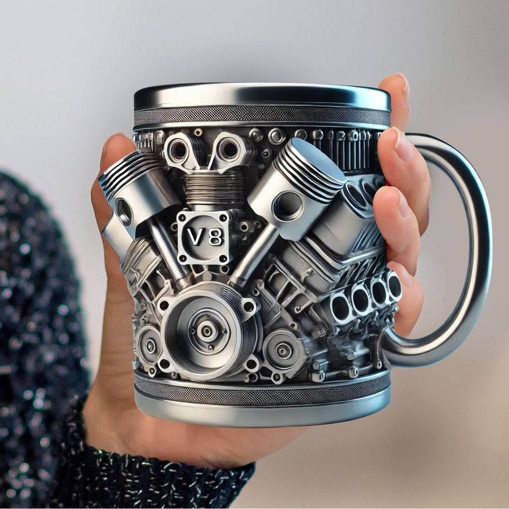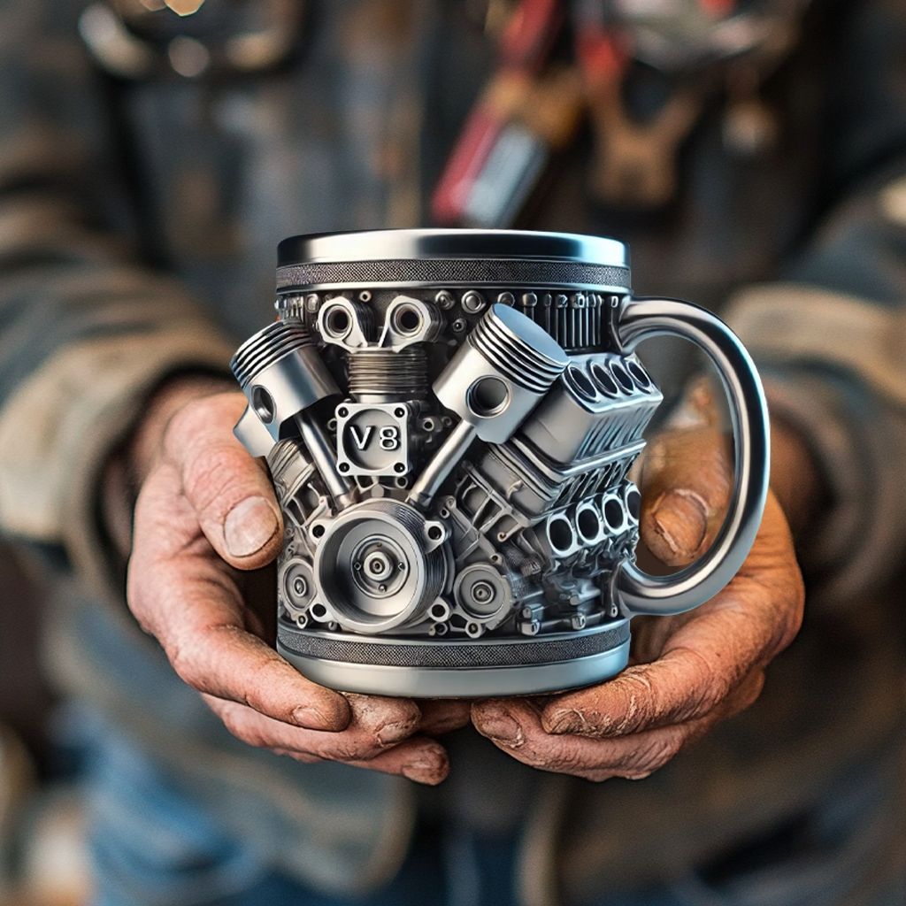 Feel the thrill of speed at all times with this 3D stainless steel "V" engine tumbler! Designed for car enthusiasts, this elegant tumbler features a bold design inspired by the iconic V8 and V6 engines.